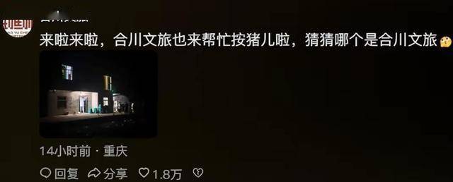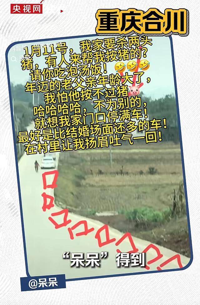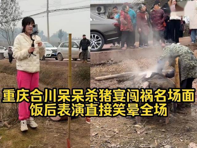 网友们的创做热情也被完全点燃,二创视频、脸色包、段子正在全网刷屏,还有人编了朗朗上口的顺口溜:“2026第一火,合川呆呆杀年猪;城里人往村里跑,只为一口刨猪汤。”。