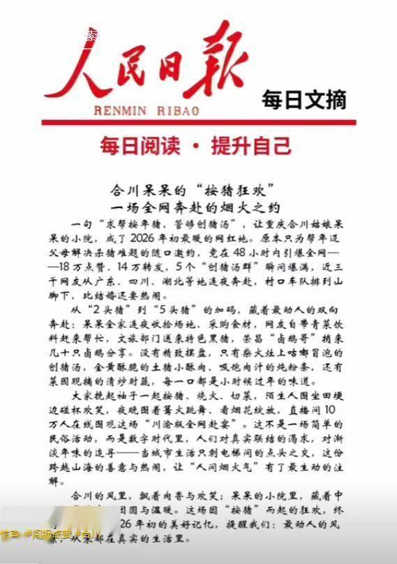 南方网:《沉庆女孩呆呆“摇人按猪”吸引上万人,最新回应称刨猪宴已竣事》发布时间:2026。1。13。