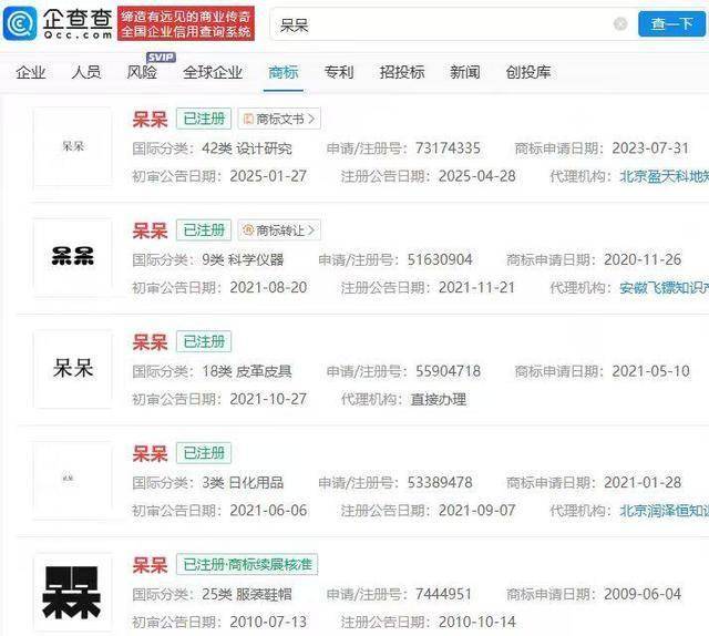 更为荒唐的是“商标抢注”之举,据息,自1月12日凌晨起,“呆呆”“合川呆呆”“呆呆刨猪汤”等17个相关名称,遭多地的商贸、文化传媒公司簇拥提交注册申请。